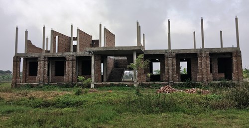 Có mặt tại thôn Ghềnh, xã Nam Hải, địa điểm xây dựng nhà máy nước mà Công ty Cổ phần Quảng Hưng Thành ghi trên hợp đồng, chúng tôi nhận thấy công trình đang được xây dở dang. Do ngừng thi công trong thời gian dài nên toàn bộ công trình đã có dấu hiệu xuống cấp. Những bức tường rêu mốc, phần sắt thép chờ đã hoen gỉ, khu vực đất trống thì cỏ dại mọc um tùm. Vì không có tường rào bảo vệ nên khuôn viên của nhà máy nước trở thành nơi chăn, thả trâu, bò của một số hộ dân xung quanh, trông rất nhếch nhác.