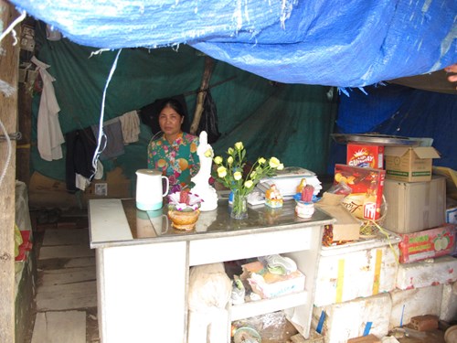Căn lán tạm bợ mà gia đình bà Nguyễn Thị Liên đang ở sau khi toàn bộ đất của gia đình phải giải tỏa phục vụ dự án.