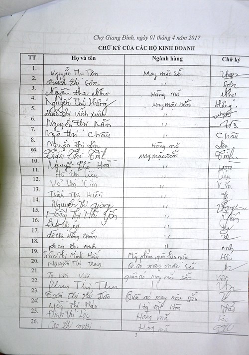 Danh sách các tiểu thương chưa đồng thuận với chủ trương xây chợ mới.
