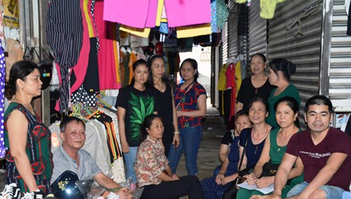 Các tiểu thương chợ Giang Đình trao đổi ý kiến với phóng viên.