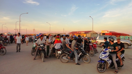 Công nhân và người dân tụ tập trước cổng Công ty Formosa ngày 14-5. Ảnh của CTV