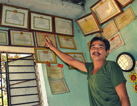 Bí thư Đinh Minh Hải với những tấm bằng khen