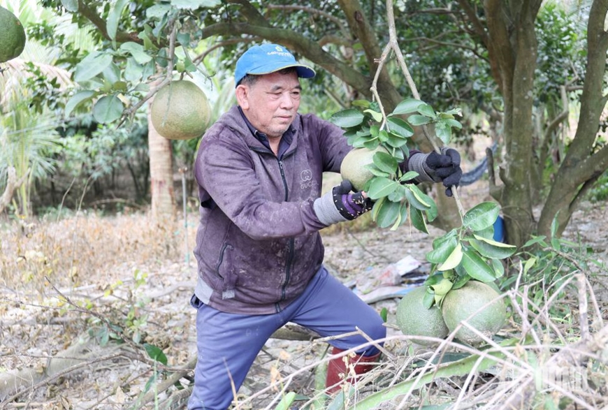 | CCB Lê Quang Dưỡng bên gốc bưởi da xanh. |