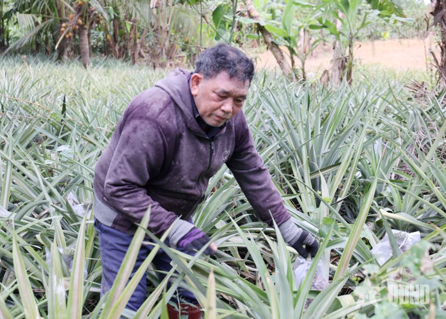 | CCB Lê Văn Dưỡng chăm sóc vườn dứa. |