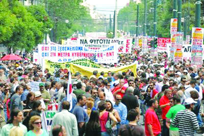 Các cuộc biểu tình, với sự tham gia của đông đảo quần chúng diễn ra tại các quảng trường trung tâm ở thủ đô Athens, đã làm Hy Lạp tê liệt. Công nhân ngành vận tải đã tham gia đình công khiến cho hầu hết các hệ thống xe lửa, máy bay và phà đều ngừng hoạt động.