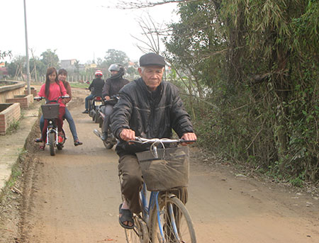 Cựu chiến sĩ Điện Biên Nguyễn Ngọc Quán trên đường đi thăm nhà đồng đội.