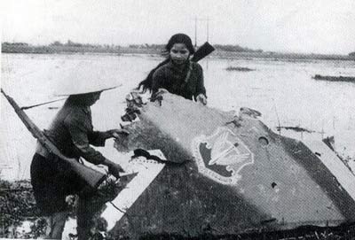Xác máy bay Mỹ rơi trên đồng ruộng.