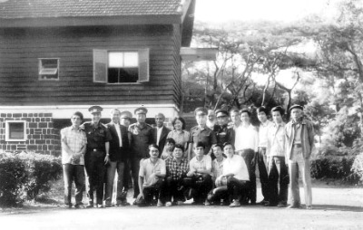 | Đại tướng Võ Nguyên Giáp và các nhà báo nước ta trong đợt rút quân tình nguyện Việt Nam từ Cam-pu-chia về nước. Ảnh chụp tại Tây Nguyên (tháng 12-1989). Ảnh TL. |