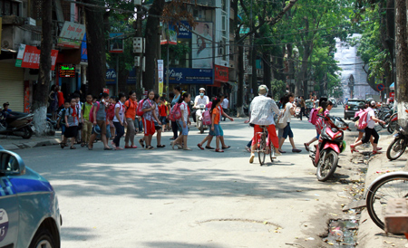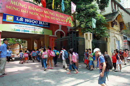 Nhiều năm nay, người dân xung quanh phố Lò Đúc đã quá quen thuộc với hình ảnh ngày nắng cũng như mưa, cứ hơn 12 giờ trưa là hàng đoàn học sinh trường Tiểu học Lê Ngọc Hân (Hai Bà Trưng, Hà Nội) lại nối đuôi nhau đi ra từ các ngõ ngách quanh khu vực trường tới lớp. Vì thiếu đất nên 31 lớp tiểu học phải học bán trú tại những ngôi nhà được thuê rải rác trong quận Hai Bà Trưng.