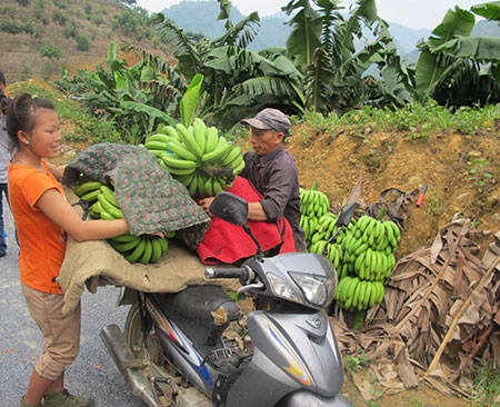 | Ở xã Bản Lầu huyện Mường Khương, giờ đây nhiều hộ dân đã trở lên khấm khá nhờ trồng dứa và chuối |