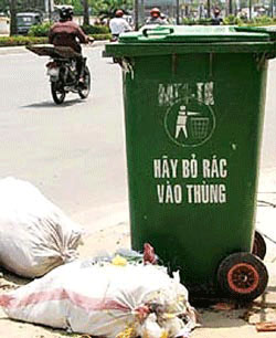 Có cả ngàn lý do để thanh minh cho việc đổ rác bừa bãi. Một trong đó vẫn thường được dùng như "lá bùa" che đậy cho những hành vi thiếu văn hóa là đổ lỗi cho việc ngành môi trường thiếu thùng đựng rác. Thế nhưng, vừa rồi bên môi trường cho lắp đặt 4 nghìn thùng đựng rác trên địa bàn 4 quận cũ của nội thành Hà Nội, nhiều hộ đã tỏ thái độ "chiến đấu" kịch liệt, tìm mọi cách không cho để thùng rác trước cửa nhà mình, nếu bị phường chỉ định, thể nào vài ba ngày sau thùng rác ở đó nhẹ thì sứt mẻ, mất nắp, nặng thì không cánh mà bay, thế nên có rất nhiều dãy phố hiện nay không có lấy một thùng đựng rác.