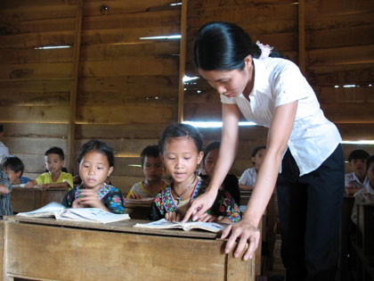 | Cô giáo Nguyễn Thị Mến dạy học sinh người Mông. |