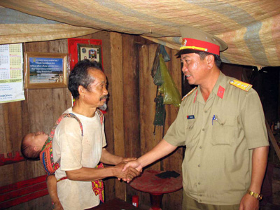 Có tiếng ho lụ sụ và tiếng chân người dịch gần về phía cửa. "Già làng Giàng A Lừ đấy" -Anh Danh quay sang phía tôi. Cánh cửa từ từ mở ra. Một người đàn ông gầy, chừng 60 tuổi, gương mặt hốc hác, mái tóc lưa thưa rối bù cất tiếng mời đứt quãng: "V..ào nhà đ…i Danh". Trung tá Danh nhanh chóng bước tới dìu già làng trở lại chiếc/ giường. "Anh b..ị sốt r…ét đấy". Tôi vừa đắp lại chiếc chăn cho già làng, thì vợ của ông đi làm rẫy về. Bà mau miệng: "May quá, bộ đội đến giúp mình đưa già làng lên bệnh xá với". Chúng tôi chưa kịp trả lời thì đã thấy tiếng Đại tá Vũ Văn Mài ở ngoài sân: "Không phải đi bệnh xá đâu. Tôi đưa bác sĩ đến khám bệnh cho già làng đây". Đi sau anh là bác sĩ Phan Tử Anh, Bệnh xá trưởng với túi thuốc và đồ nghề đeo bên hông. "Ôi già làng Giàng Seo Mài. Mình cám ơn nhiều nhé. Sao cán bộ biết chồng mình ốm mà đến thăm?" - Tiếng vợ già làng Giàng A Lừ ở sau bếp. "Mình biết từ hôm qua, nhưng công việc bận quá". Trong lúc bác sĩ Phan Tử Anh đo huyết áp, đo nhiệt độ cho bệnh nhân, tôi còn ấn tượng với câu nói: "Già làng Giàng Seo Mài" và già làng xưng "anh" với bộ đội. Phải quý trọng vị đại tá này lắm, coi bộ đội như người nhà, bà con mới nói như thế.