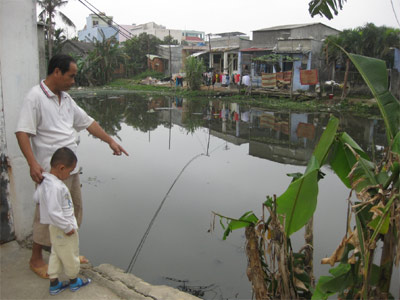 Theo ông Châu, sở dĩ khu vực này ô nhiễm nặng là do toàn bộ nước thải của các hộ gia đình trên các tuyến đường Nguyễn Công Trứ, Phạm Văn Đồng không thoát kịp ra cống Mỹ Khê, nên chảy tràn vào. Đã gần hai năm nay, tình trạng nước đọng như ao tù quanh năm. Không riêng gì gia đình ông Châu mà hàng trăm hộ dân ở đây cũng phải chịu cảnh hôi thối. Và đây chính là mầm mống của dịch bệnh. Dịp cuối năm 2010, gia đình chị Trần Thị Tâm ở kế bên bị sốt xuất huyết.