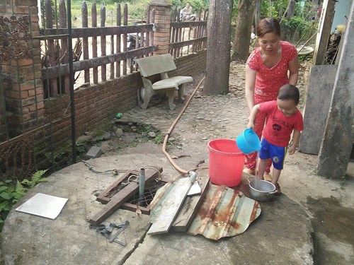 Hằng ngày chị Lê Thị Thủy, tổ 4, thôn Trung Nghĩa và các thành viên trong gia đình vẫn phải lấy nước từ giếng tự đào để sử dụng trong sinh hoạt.