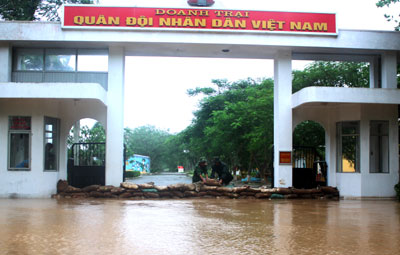 | Triều cường khi bão đến có thể xâm nhập đơn vị, gây thiệt hại lớn về tài sản, vậy nên Trung đoàn 50 luôn coi chống nước biển xâm nhập là nhiệm vụ quan trọng khi chống bão. Ảnh: Hoàng Hà. |