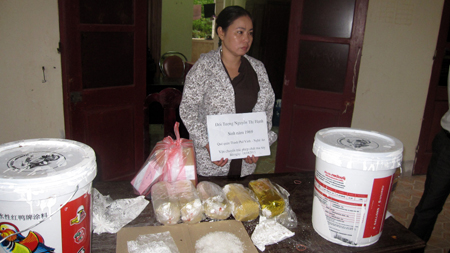 Đối tượng Nguyễn Thị Hạnh cùng tang vật bị bắt giữ trong vụ vận chuyển trái phép chất ma túy ngày 18-8-2011.