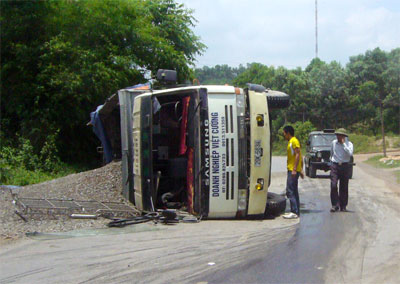 Một vụ tai nạn tại Km10, Quốc lộ 1B thuộc địa phận xã Hóa Trung, huyện Đồng Hỷ (Thái Nguyên) do lái xe phóng nhanh, không làm chủ tốc độ.