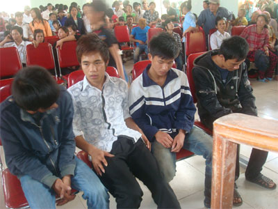 Bốn đối tượng trong vụ cắt trộm cáp viễn thông bị TAND huyện Quỳnh Lưu đưa ra xét xử ngày 19-5-2011.