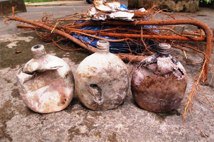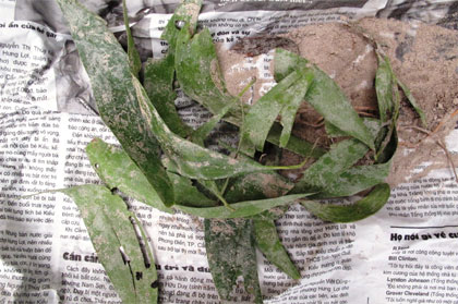 | Các “di vật” ghi rõ tên liệt sĩ và rễ cây đã bị chặt đứt từ trước được tìm thấy trong các hố đào. |