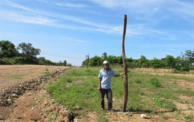 Đường điện về khu tái định cư mới chỉ có hàng cột gỗ.