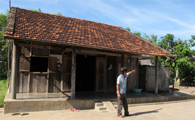 Ông Nông Văn Hiếu bên căn nhà phải di dời.