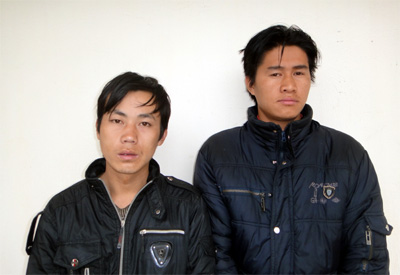 Hai đối tượng Hoàng Văn Chính và Lù Seo Sà phạm tội buôn bán phụ nữ bị Đồn Biên phòng Bản Lầu bắt giữ.