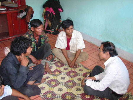 Anh Nưng và một số người dân trong làng trao đổi với phóng viên về hủ tục thuốc thư – ma lai