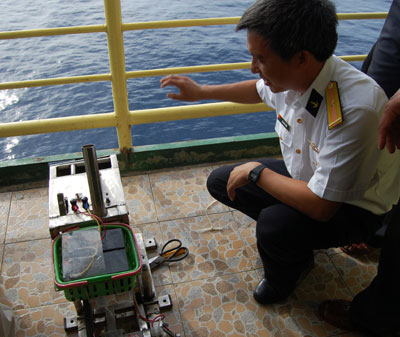 | Chiếc máy câu với nhiều ưu điểm mà ông Nguyễn Văn Tuấn tặng bộ đội Nhà giàn DK1/2 |
