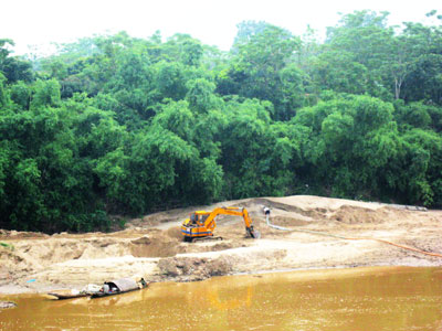 Các bãi khai thác cát sỏi trái phép vẫn ngang nhiên hoạt động bên bờ sông Mã