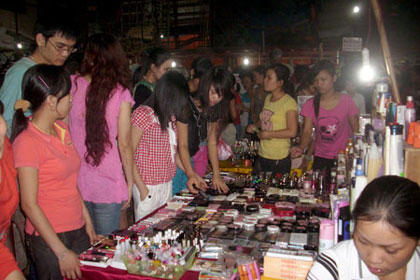 | Quầy hàng mỹ phẩm luôn đông sinh viên đến mua. |