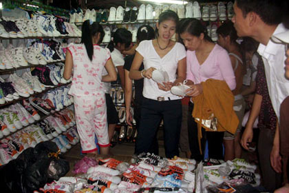 | Giày dép bán ở chợ hầu hềt là đồ Trung Quốc |