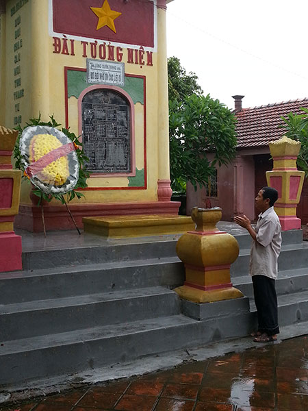 Ông Nguyễn Văn Vi, Bí thư Chi bộ thôn Quán Trang dâng hương tại Đài tưởng niệm các liệt sĩ và nhân dân đã bị địch sát hại. Ảnh: Lê Đức