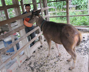 CCB Hoàng Ngọc Hoàn đang chăm sóc con nai nuôi lấy nhung