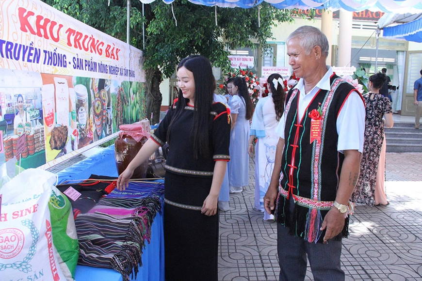 | Ông Y Taih Priêng tuyên truyền, vận động người dân phát triển kinh tế, bảo tồn văn hóa truyền thống. |
