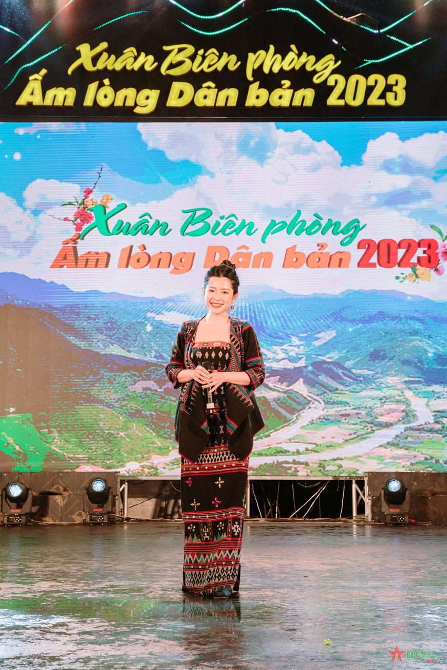 Đại úy QNCN Trần Thị Thu Hoàn trong Chương trình "Xuân biên phòng ấm lòng dân bản" năm 2023.