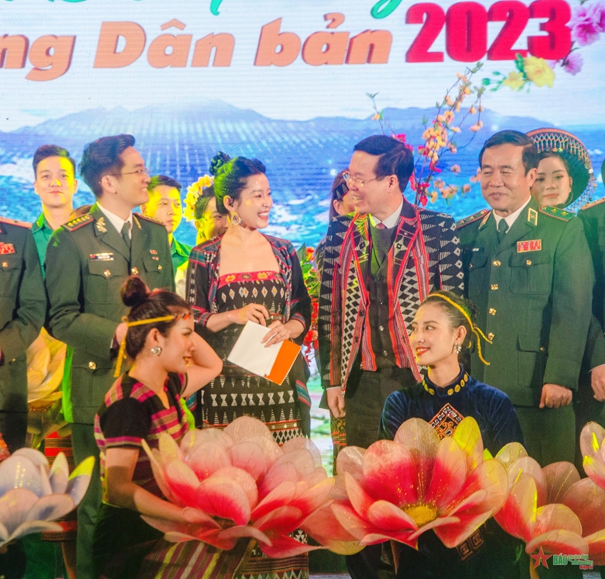 | Thu Hoàn trong Chương trình "Xuân biên phòng ấm lòng dân bản" năm 2023 có sự tham dự của Chủ tịch nước Võ Văn Thưởng. |