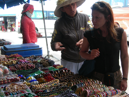 Khách du lịch xem đồ lưu niệm ở đèo Hải Vân