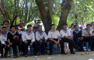 Có một điều lạ là khi ra đảo, muốn kiếm thông tin về một người nào đó đang công tác là ngay lập tức tìm được thông qua sự hỏi thăm... Hỏi Đại úy Vũ Hoài Nam, Khung trưởng Khung xây dựng Trung đoàn Công binh 131 Hải Quân, mới ra đảo hồi tháng 3-2012 về chiến sĩ Phan Văn Hòa, ngay lập tức Nam kể cho tôi nghe về hoàn cảnh và những tình cảm mà quân và dân thị trấn Trường Sa Lớn dành tặng con đồng chí Hòa ở đất liền. Sau này, Trung tá Lý Hồng Duyên, Chính trị viên Cụm 1, đảo Trường Sa lớn kể rằng, khi biết con Hòa bị bệnh hiểm nghèo phải lọc máu một tháng một lần, chi phí rất tốn kém, toàn bộ quân và dân trên thị trấn đảo Trường Sa Lớn đã ủng hộ quỹ “nghĩa tình đồng đội” được hơn 26 triệu đồng, góp vào điều trị bệnh cho cháu. Có một chuyện mà Thượng úy Vũ Đức Vinh, Chính trị viên đảo Đá Thị kể lại làm tôi nhớ mãi : bố đẻ của đồng chí Vũ Văn Minh bị bệnh hiểm nghèo và qua đời,Minh không về được, đồng đội trên đảo không những lập bàn thờ phúng viếng như phong tục ở quê mà còn thay nhau động viên thăm hỏi, thay nhau gọi điện về nhà chia sẻ, đồng thời đã quyên góp được gần 5 triệu đồng ủng hộ gia đình. Tình gia đình, tình đồng đội đã giúp đồng chí Minh vững vàng hơn trước mất mát lớn lao. Mới đây, trên đường từ TP. Hồ Chí Minh về Đà Nẵng, tôi nghé thăm chị Nguyễn Thị Thảo, vợ của Thượng úy Phạm Cúc Phương, Điểm trưởng đảo Tốc Tan C. Con trai Phương mới mất hôm 15-4-2012, khi mới ba tuổi rưỡi vì bệnh ung thư máu quái ác. Thảo cho biết: “Trong lúc con em bị bệnh phải nằn viện liên tục từ tháng 10-2010 đến lúc cháu mất, đồng đội của chồng em ở đảo thường xuyên gọi điện động viên, chia sẻ, điều đó như tiếp thêm cho em nghị lực vượt qua nỗi đau, tập trung tinh thần chữa trị cho con”.