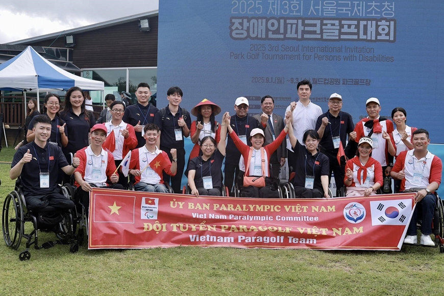 Đoàn Ngọc Chiến cùng đội tuyển Para Golf Việt Nam tham dự Giải 2025 3rd Seoul International Invitation Park Golf Tournament for Persons with Disabilities. Ảnh: NVCC
