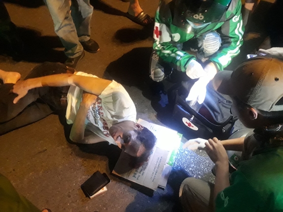 Các thành viên Đội hỗ trợ sơ cứu-FAS Angel cấp cứu các nạn nhân tai nạn giao thông. Ảnh nhân vật cung cấp.