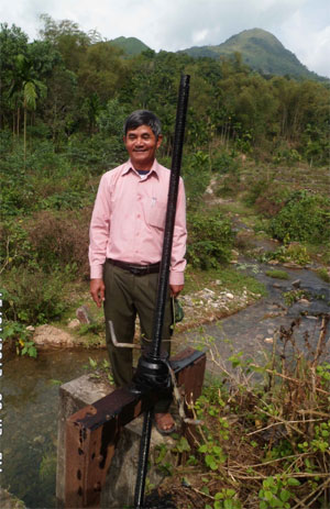 | Niềm vui của ông Bút khi chương trình nước sạch về địa bàn xã Ba Điền. |