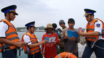 Lực lượng PCTP ma túy CSB tuyên truyền pháp luật cho ngư dân. Ảnh: TH