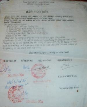 Văn bản cam kết của chính quyền xã với giáo viên vay tiền