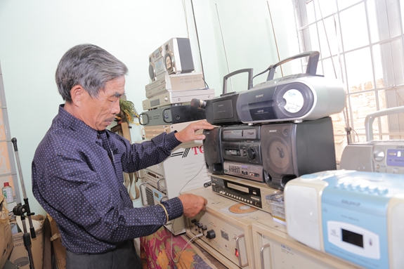 Trong phòng thu chật chội, “gia tài” của ông Quang chẳng có gì ngoài các loại máy móc, âm ly. Với 60 bộ loa không dây đặt tại 8 thôn, 2 buôn, công việc của ông Quang chẳng lúc nào ngơi. Bất kể trời nắng hay mưa, nhận được tin báo của bà con về việc đường truyền không ổn định, có sự cố là ông lại tức tốc lên đường sửa chữa, khắc phục ngay.