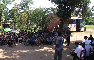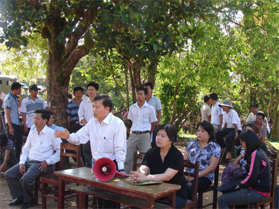 Làng Ket Krot họp dân thông báo về hoạt động chống phá của FULRO. (ảnh này nên cắt cúp một phần căn nhà xấu ở bên phải)