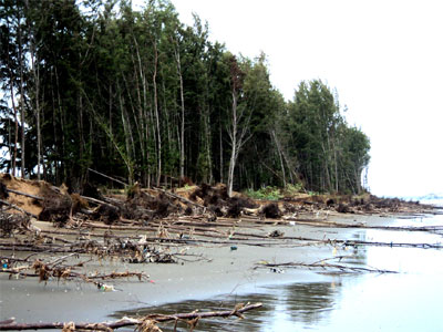 | Sạt lở đê biển Hiệp Thạnh (Trà Vinh) do tác động của BĐKH. |