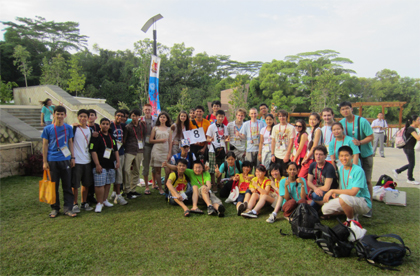 Đội tuyển Olympic Sinh học Việt Nam cùng bạn bè quốc tế tại Xin-ga-po. Ảnh: Ngọc Hồng.