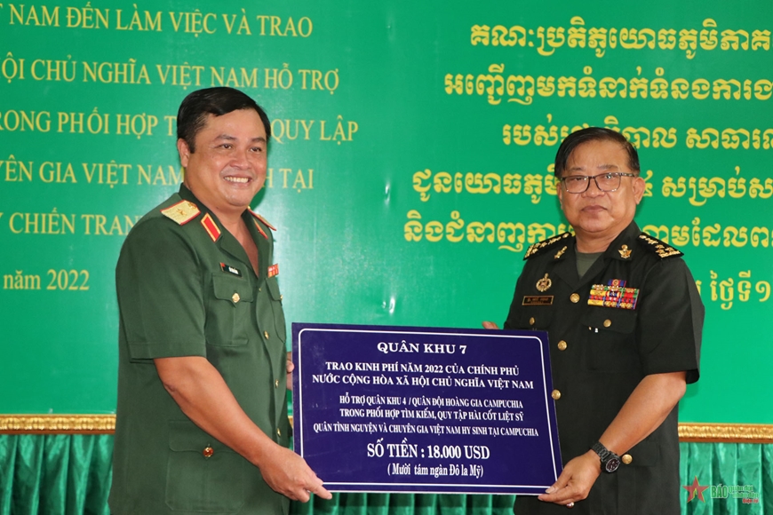 Thực hiện thỏa thuận được ký kết giữa hai Chính phủ, sau 21 năm tổ chức tìm kiếm, quy tập, đã có gần 10.000 hài cốt liệt sĩ quân tình nguyện và chuyên gia Việt Nam được các Đội chuyên trách của Quân khu 7 cất bốc, đưa về nước. Riêng đợt mùa khô 2021-2022, các đội đã phối hợp chặt chẽ với lực lượng chuyên trách của các đơn vị bạn quy tập được hơn 300 bộ hài cốt liệt sĩ, đồng thời tiếp nhận hàng trăm thông tin có giá trị do bà con nhân dân cung cấp. Tuy nhiên vẫn còn nhiều khó khăn trong công tác này đó là do tốc độ phát triển, đô thị hóa nhanh, nhiều mộ liệt sĩ nằm rải rác, thời tiết, khí hậu khắc nghiệt, địa hình hoàn toàn thay đổi, các nhân chứng hầu hết đã già không còn minh mẫn.