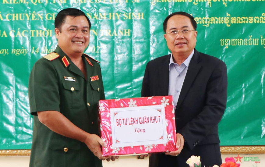Với mỗi thành viên trong đoàn công tác, tình cảm, những lời cam kết từ bạn càng thêm yên tâm, tin tưởng như lời ngài Kao Sok An, Phó tỉnh trưởng, Trưởng ban Chuyên trách tỉnh Kampong Cham chia sẻ: “Ngày xưa Việt Nam-Campuchia cùng chia nhau hạt muối, ngày nay chúng ta cùng hút chung điếu thuốc, đó là sự khẳng định từ các cấp chính quyền, quân đội và Nhân dân Campuchia luôn đồng hành với Quân khu 7 thực hiện tốt nhiệm vụ nghĩa tình, sớm đưa những người con ưu tú của Việt Nam trở về đoàn tụ với gia đình”.